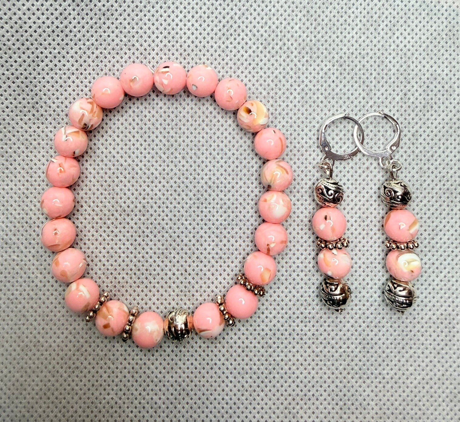 8 mm Pink Sheel Howlite Turqoise with silver-plated bead spacers