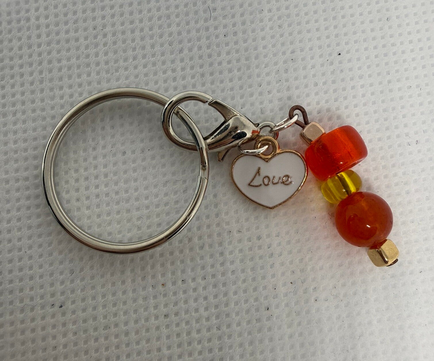 Keychain - Silver, Orange Dyed Jade Bead, Orange Czech Bead, White Enamel "LOVE" charm